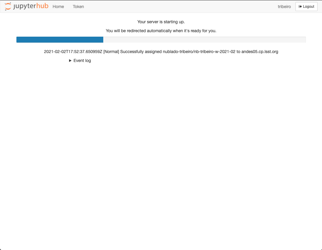 This should take you to the Nublado launch page, if this is the first time you login or if you are logged off.
