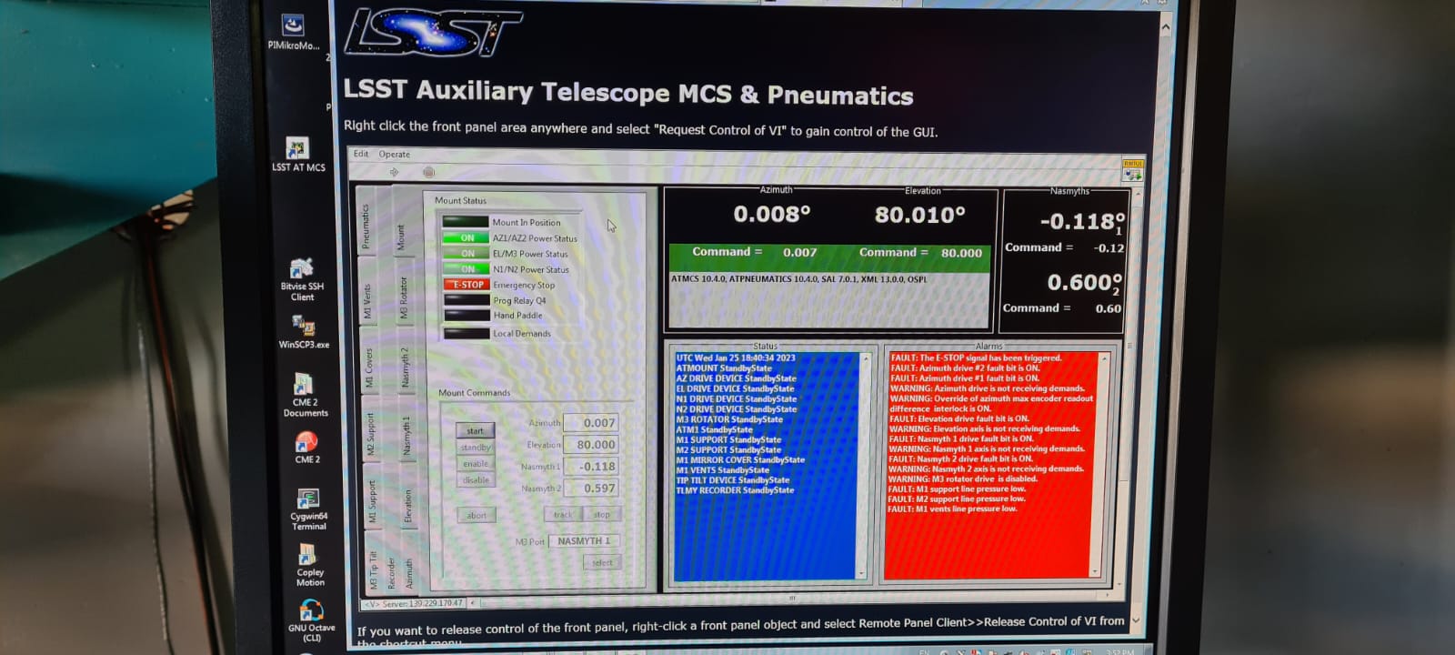 In the future, a physical emergency stop button will also be added to the Control Room. For now, the emergency E-stop system available there will only work for the main telescope components. The only way to activate the E-stop system for the Auxiliary Telescope is by doing it physically on site itself.