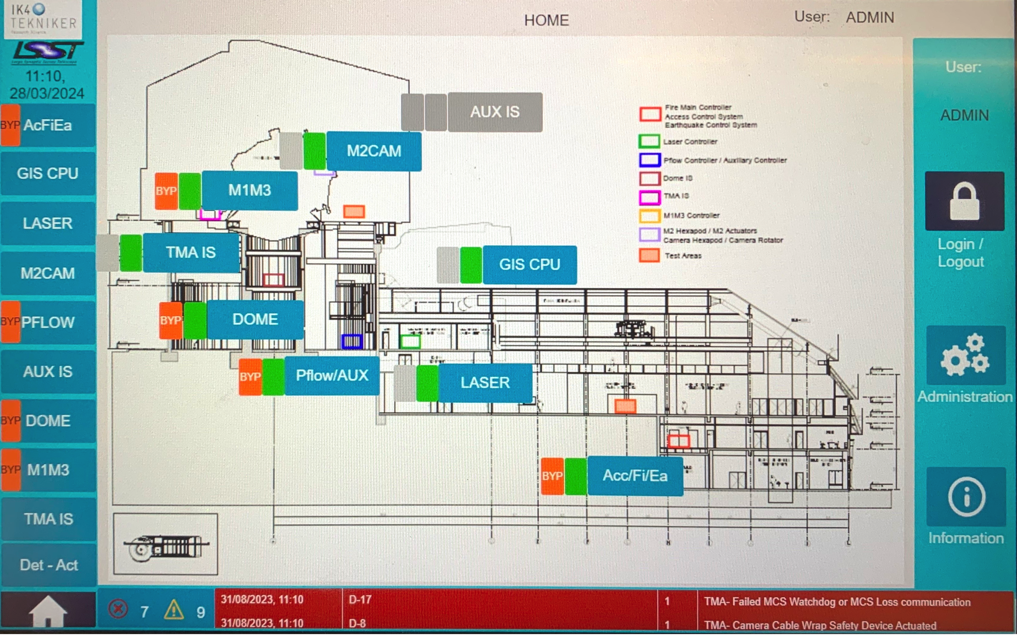 TMA, M1M3 and Dome have their own interlock system (IS) but they communicate to the GIS. For instance, if a TMA interlock is triggered, you will see it in the GIS Main controller.