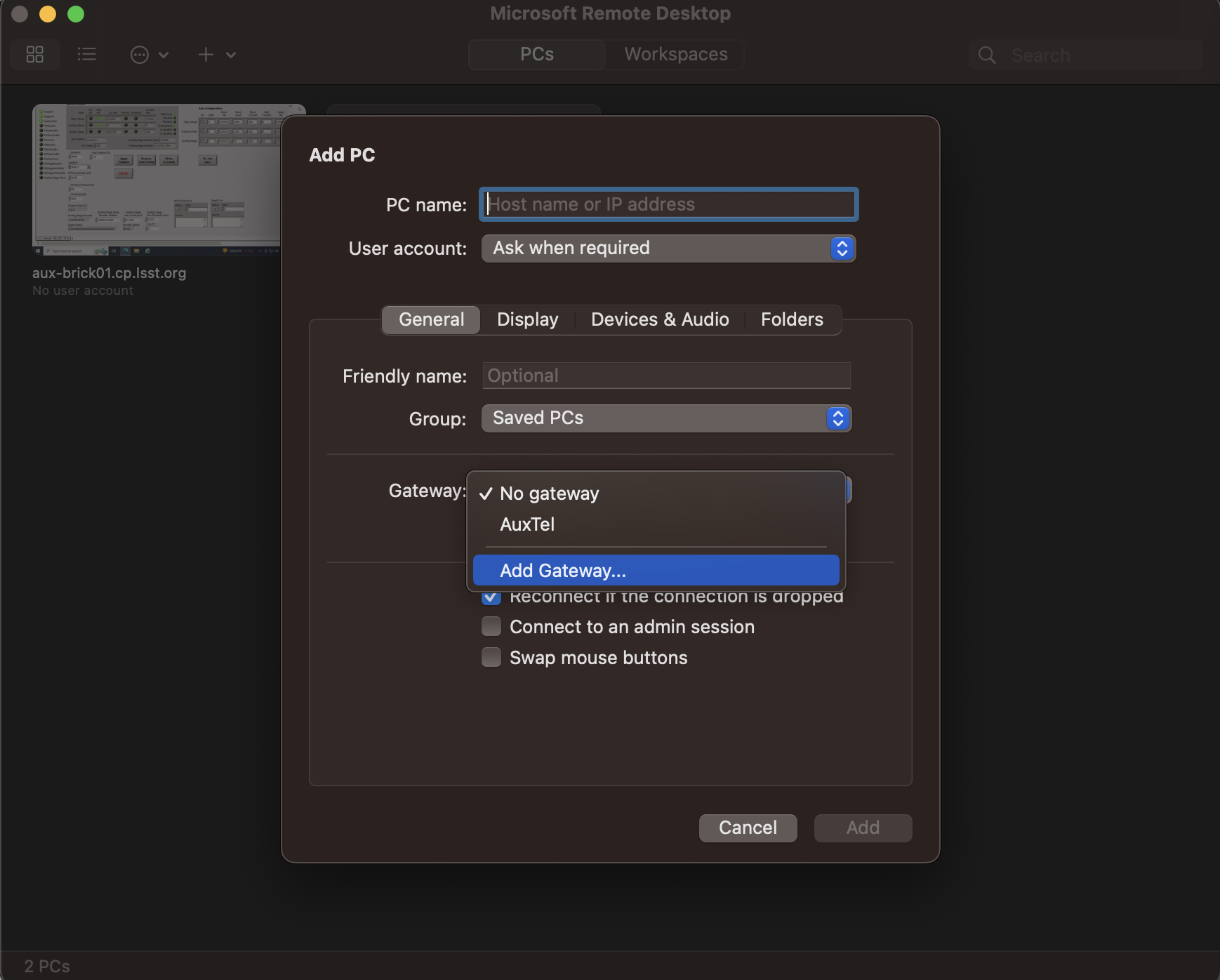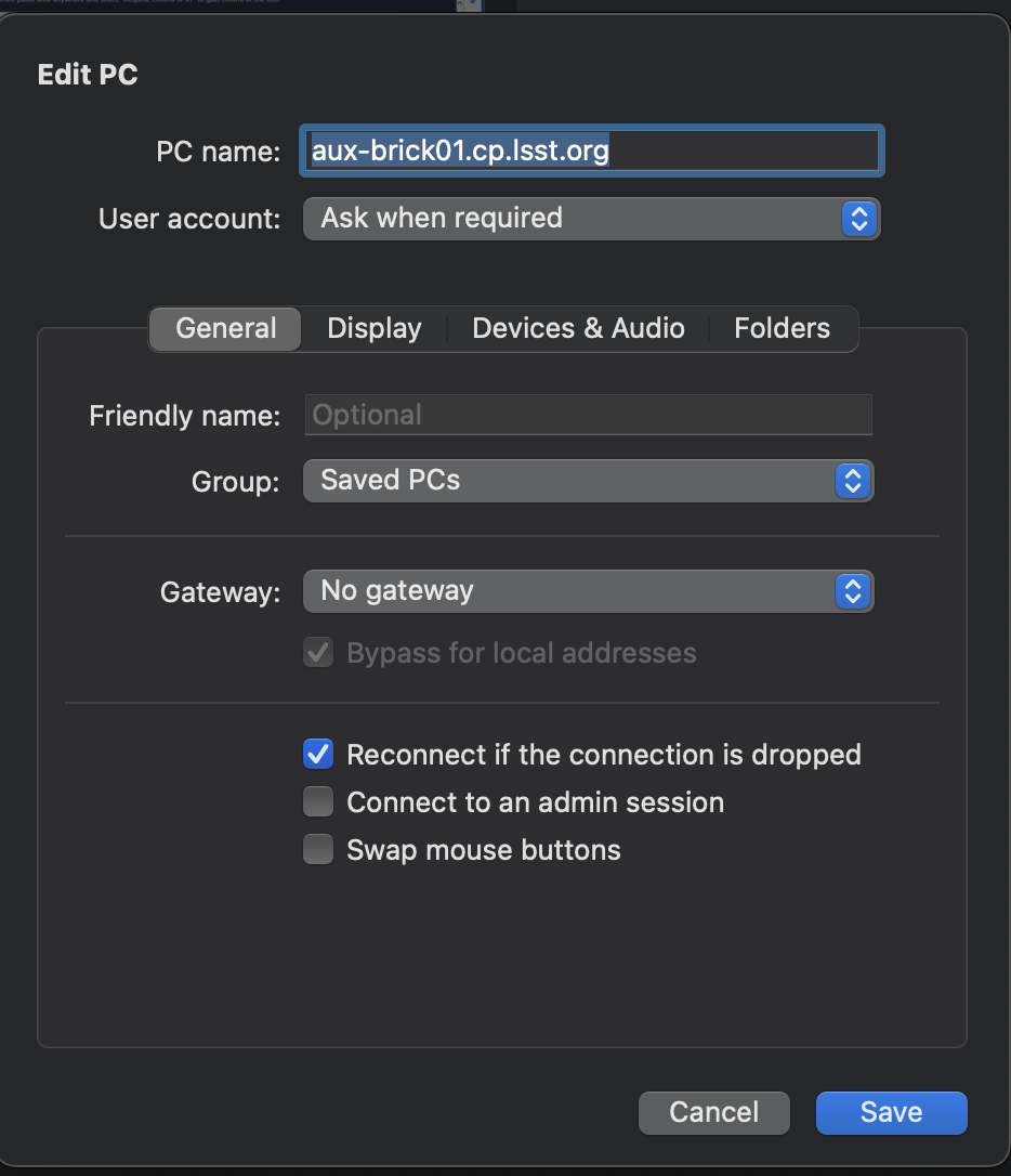 Put aux-brick01.cp.lsst.org on the “PC name” → “Save”