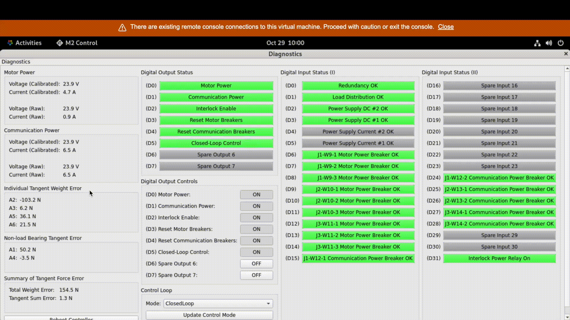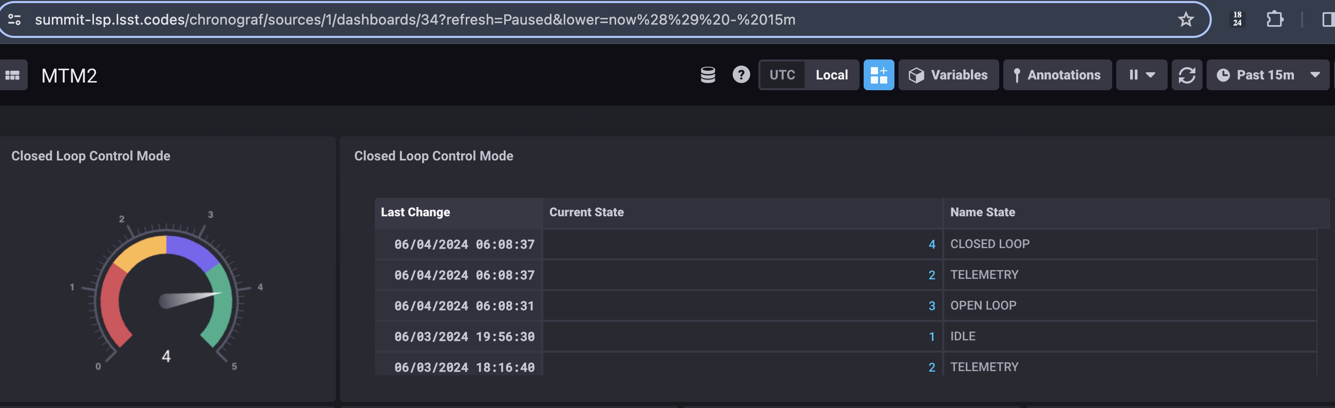 Check that M2 in under closed-loop control 4 in Chronograf M2 dashboard.