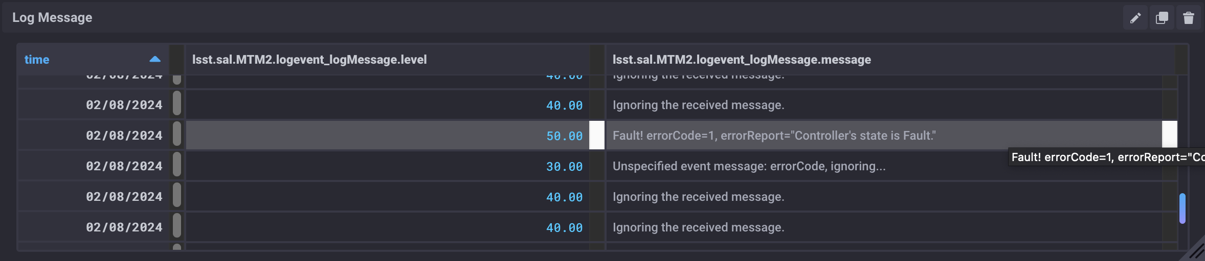 Log your observations on the cause and add comments to a Jira ticket (either existing or one you create). Include any unique activities occurring when the fault happened as MTM2 is not expected to fault.