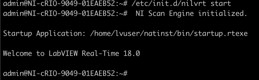 You may press enter to regain your shell prompt when you see the following “Welcome to LabVIEW Real-Time 18.0”. It may take several minutes.