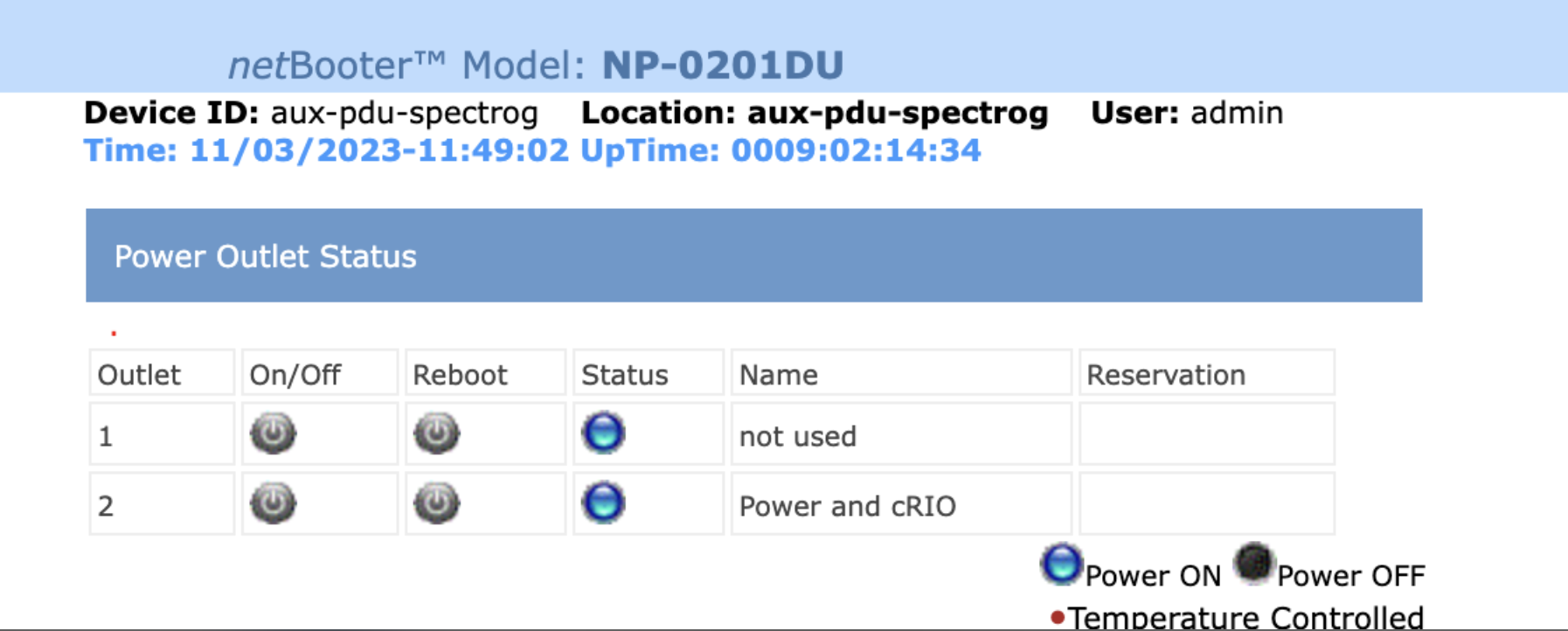 STANDBYStatus.Connect to http://aux-pdu-spectrograph.cp.lsst.org/ (only accessible from the summit).